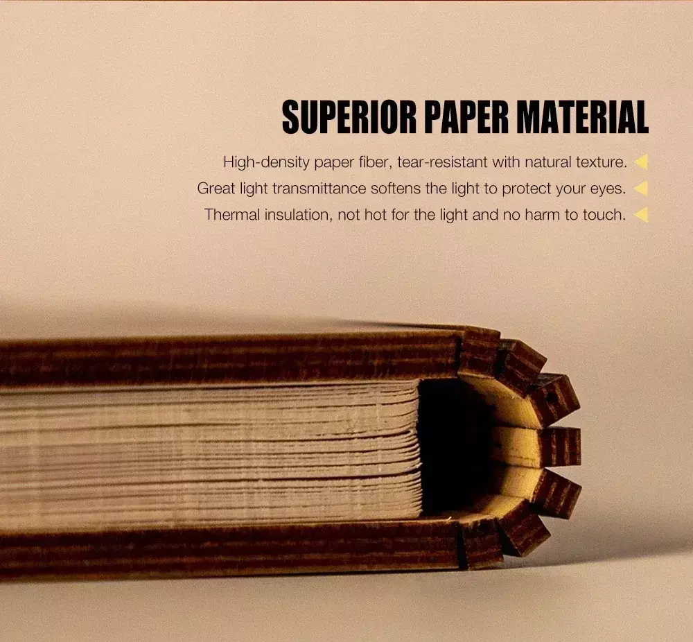 O Lumibook™ cria uma atmosfera suave, quente e acolhedora, perfeita para relaxar, ler ou decorar seu espaço com estilo. Seu design inovador em forma de livro, com páginas luminosas e textura de madeira natural, transforma qualquer cômodo em um refúgio de conforto e elegância.