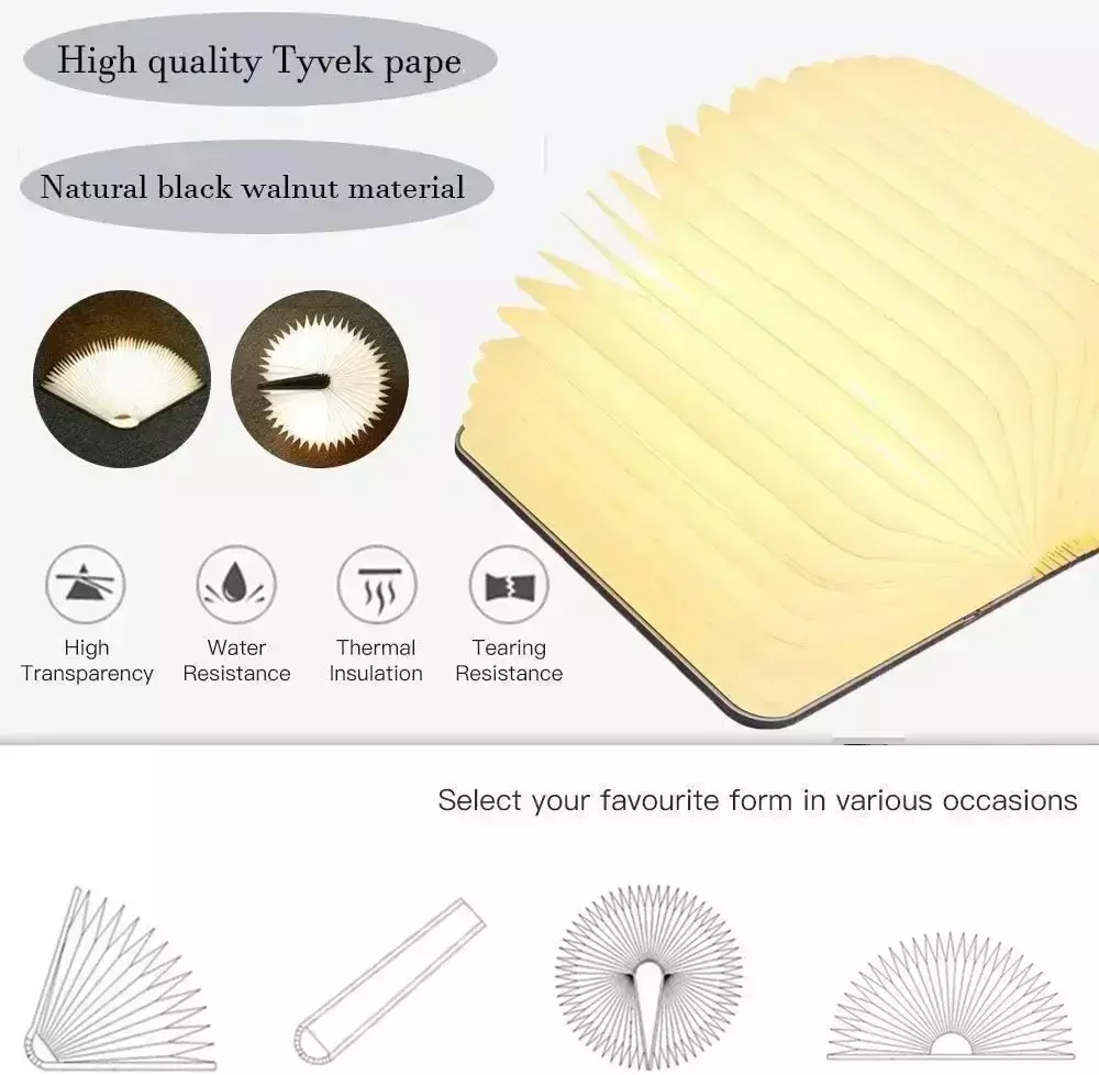 📖 Design dobrável 360°: abra o livro como quiser e ilumine todo o ambiente em qualquer ângulo.