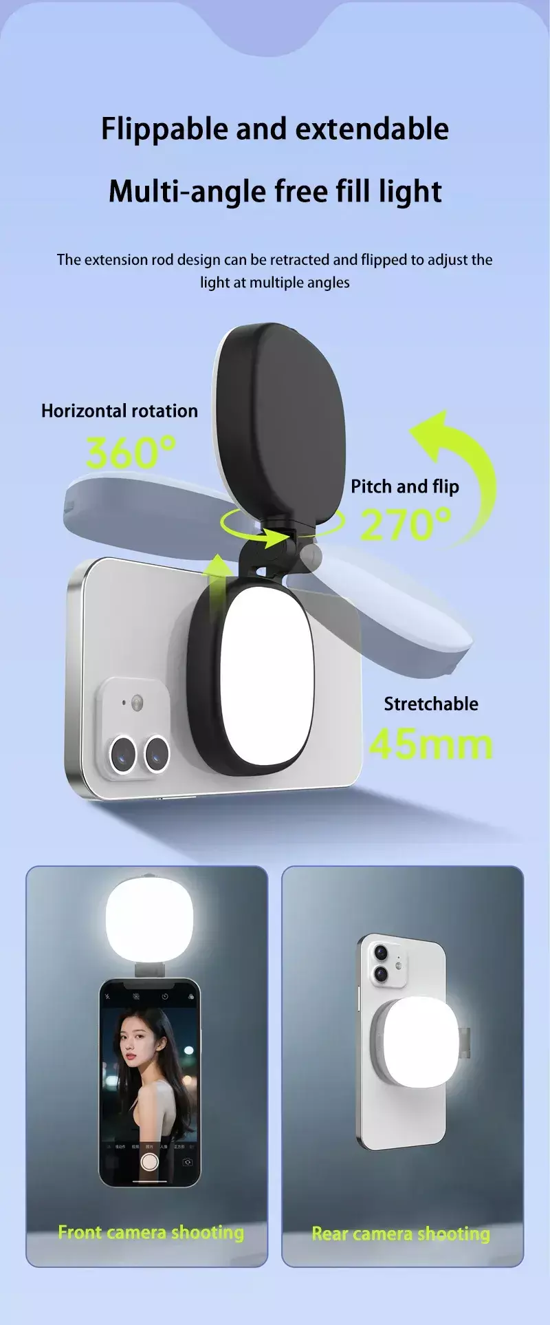 Com apenas 80g e do tamanho de uma moeda grande, o LumiSnap™ cabe em qualquer bolsa ou bolso. É o acessório perfeito para criadores de conteúdo, vloggers, viajantes e amantes de boas selfies.