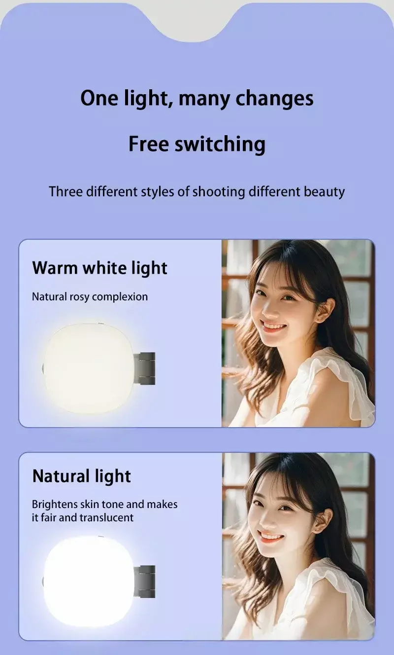 Pare de depender da iluminação ruim! O LumiSnap™ garante selfies perfeitas e vídeos nítidos, seja de dia, à noite ou em ambientes com pouca luz. Com ajuste de brilho e temperatura de cor, você controla exatamente como quer aparecer — com pele natural, tom uniforme e brilho de estúdio em segundos.